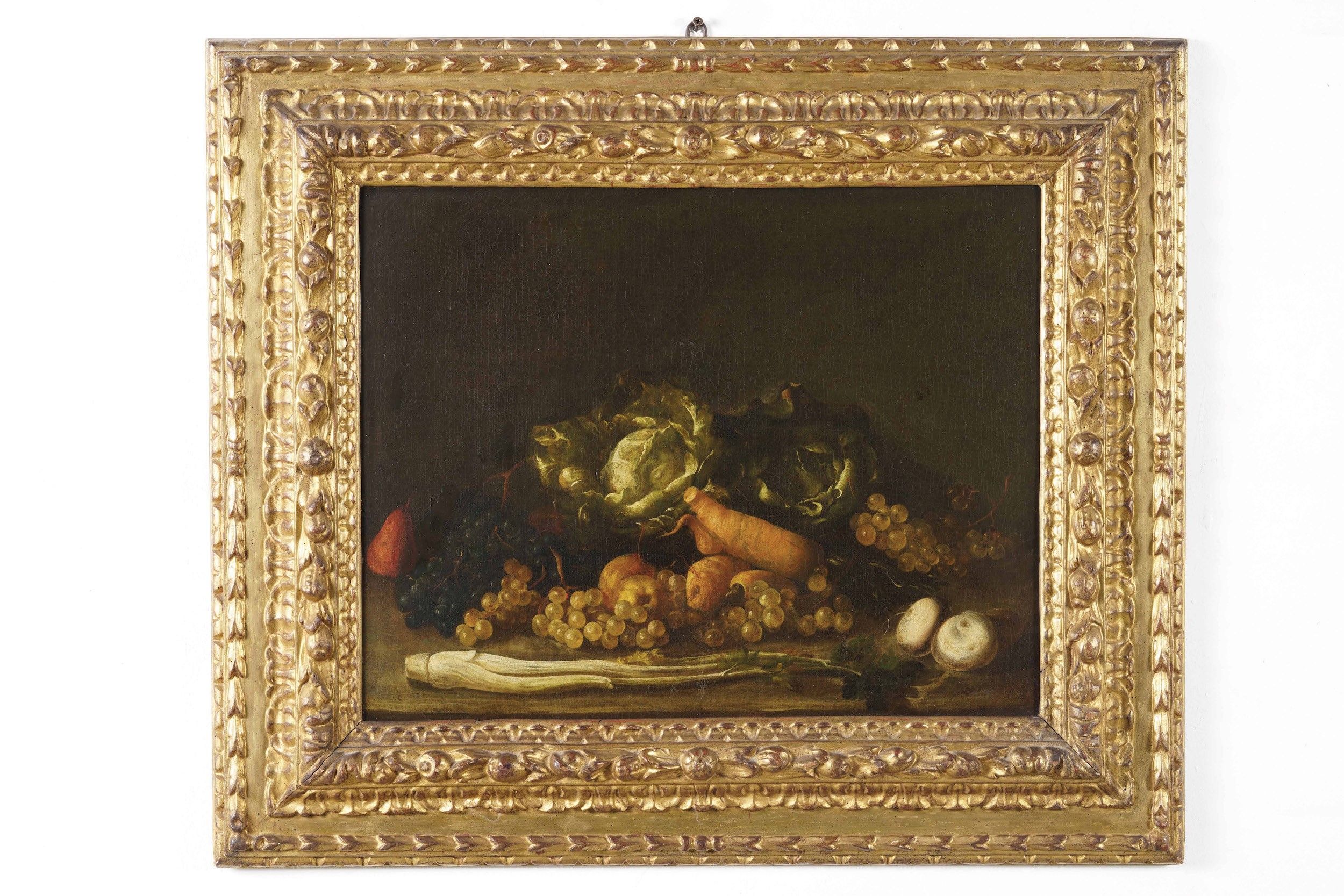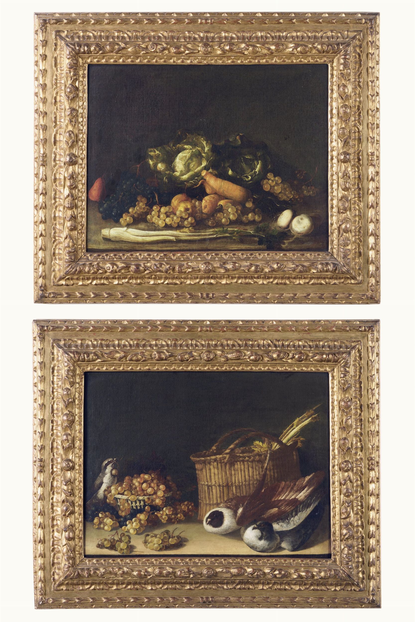 Scuola emiliana del XVIII secolo Nature morte con verdure, frutti e uccellini