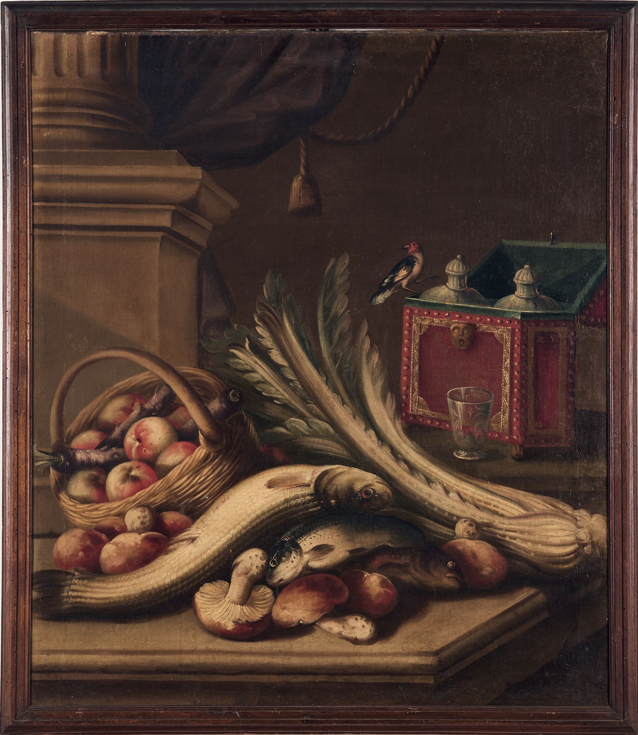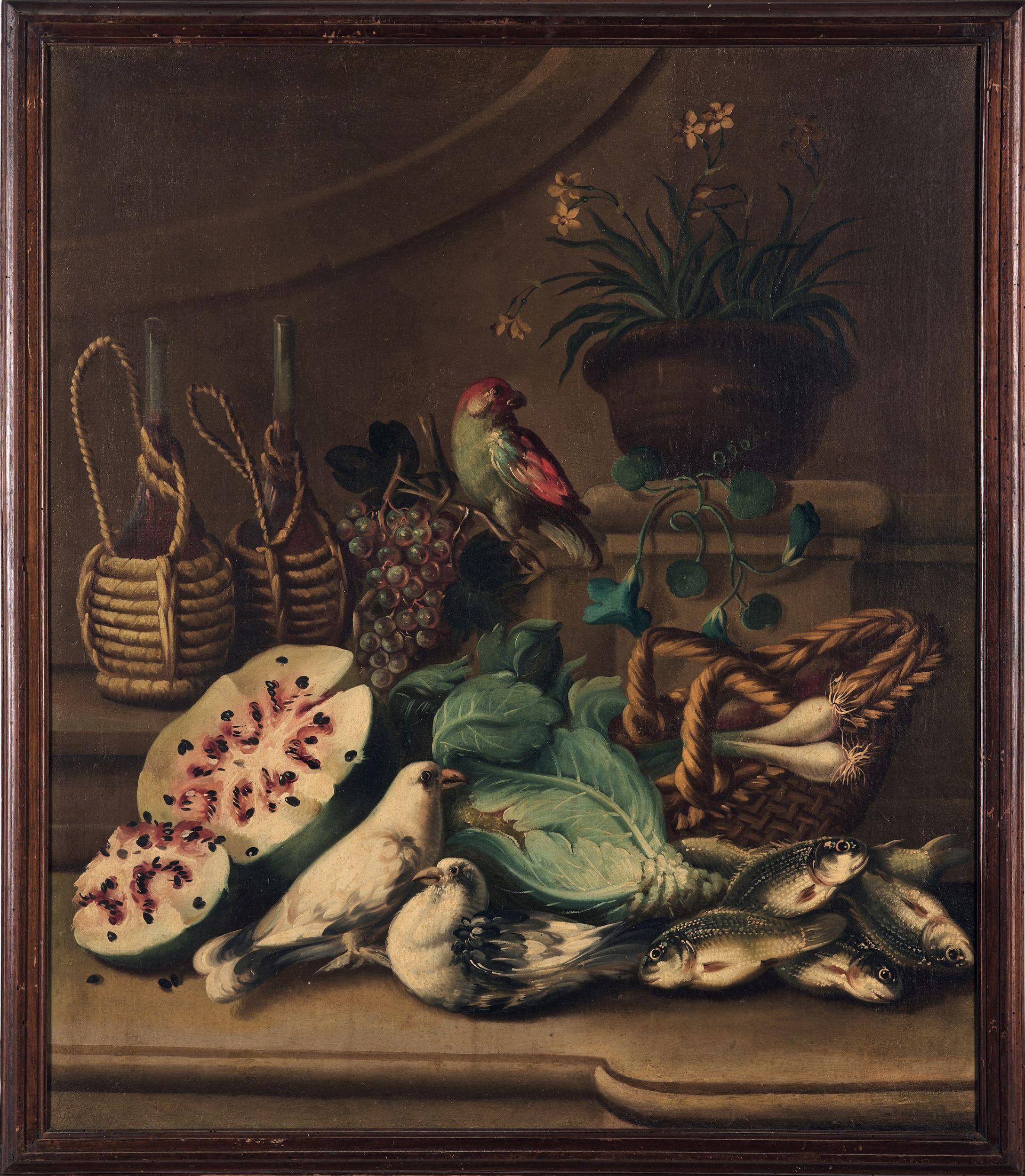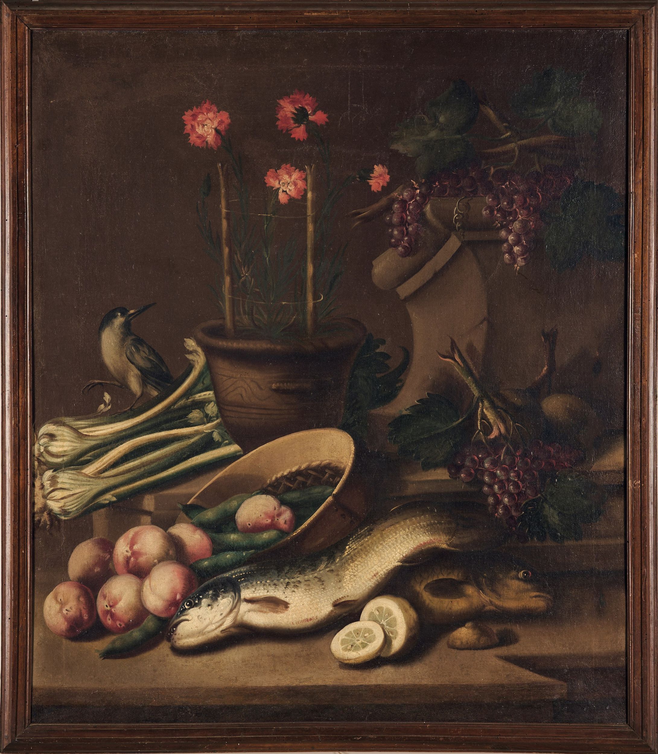 Scuola lombarda del XVIII secolo Nature morte con frutti, ortaggi, pesci e altri [..]