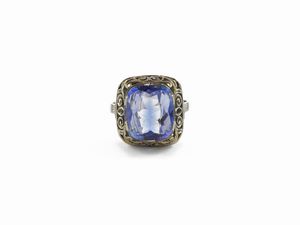 misure 13,5-14-15 Inizio del XX secolo il primo anello in oro bianco realizzato a motivo floreale con zaffiro [..]
