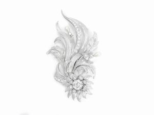 Spilla Marcello Minotto in oro bianco con diamanti e perle coltivate barocche