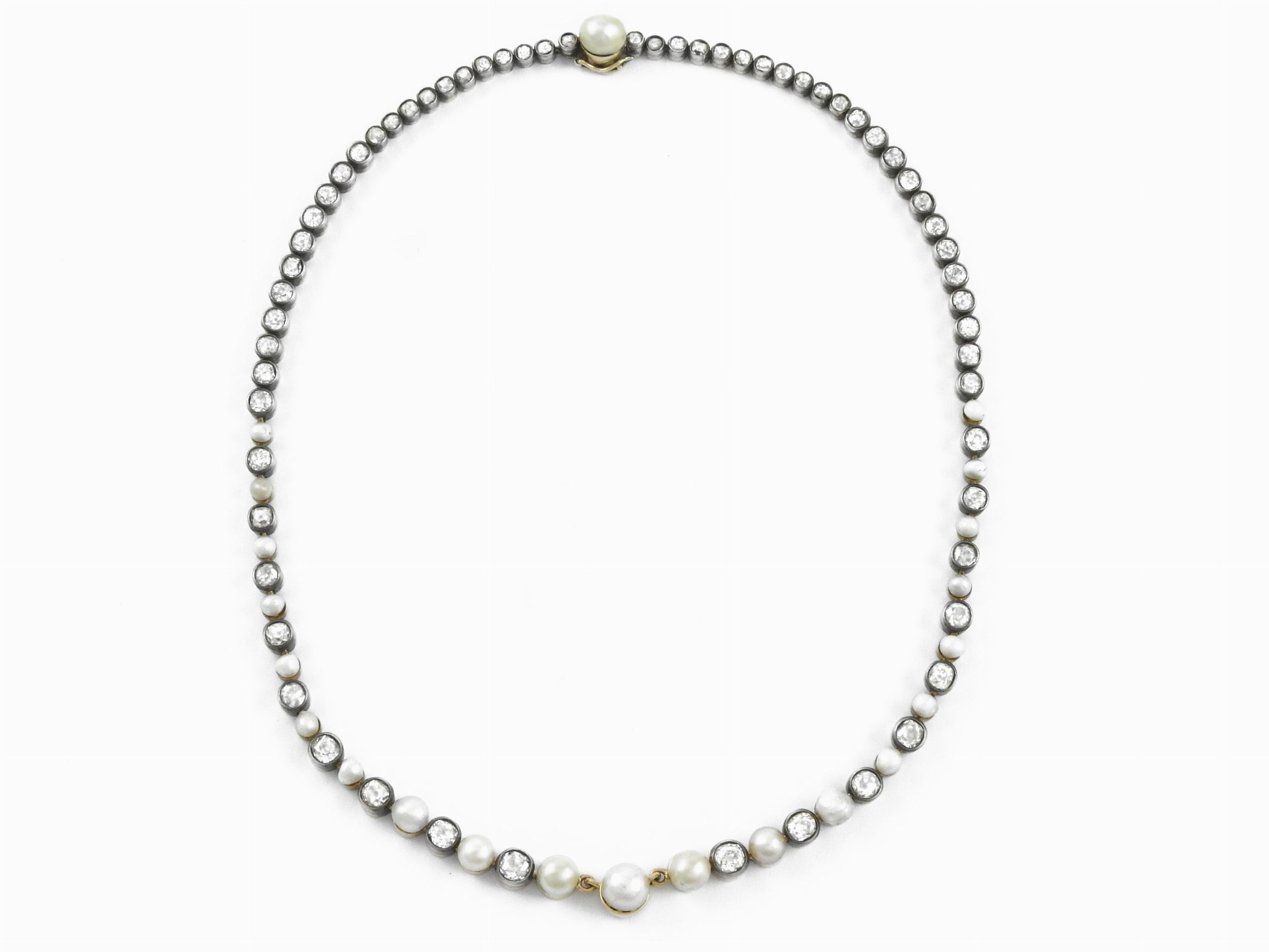 Girocollo in oro giallo e argento con diamanti e perle