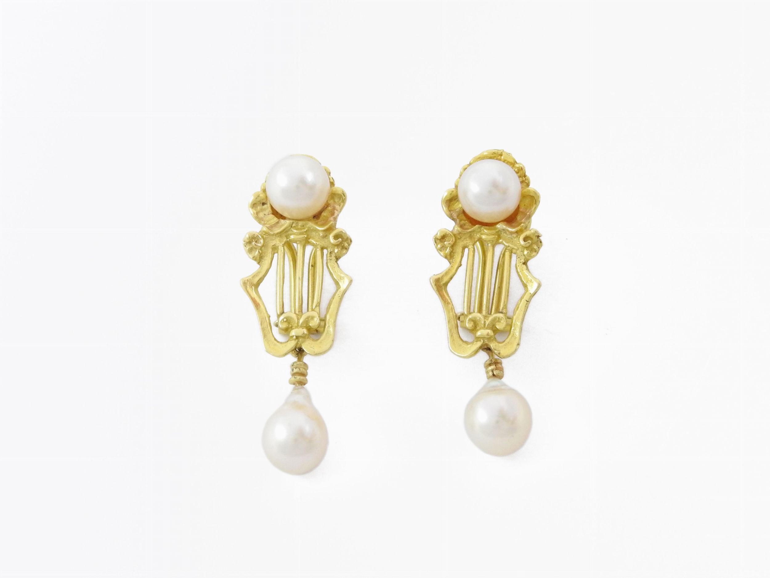 Orecchini pendenti in oro giallo con perle coltivate