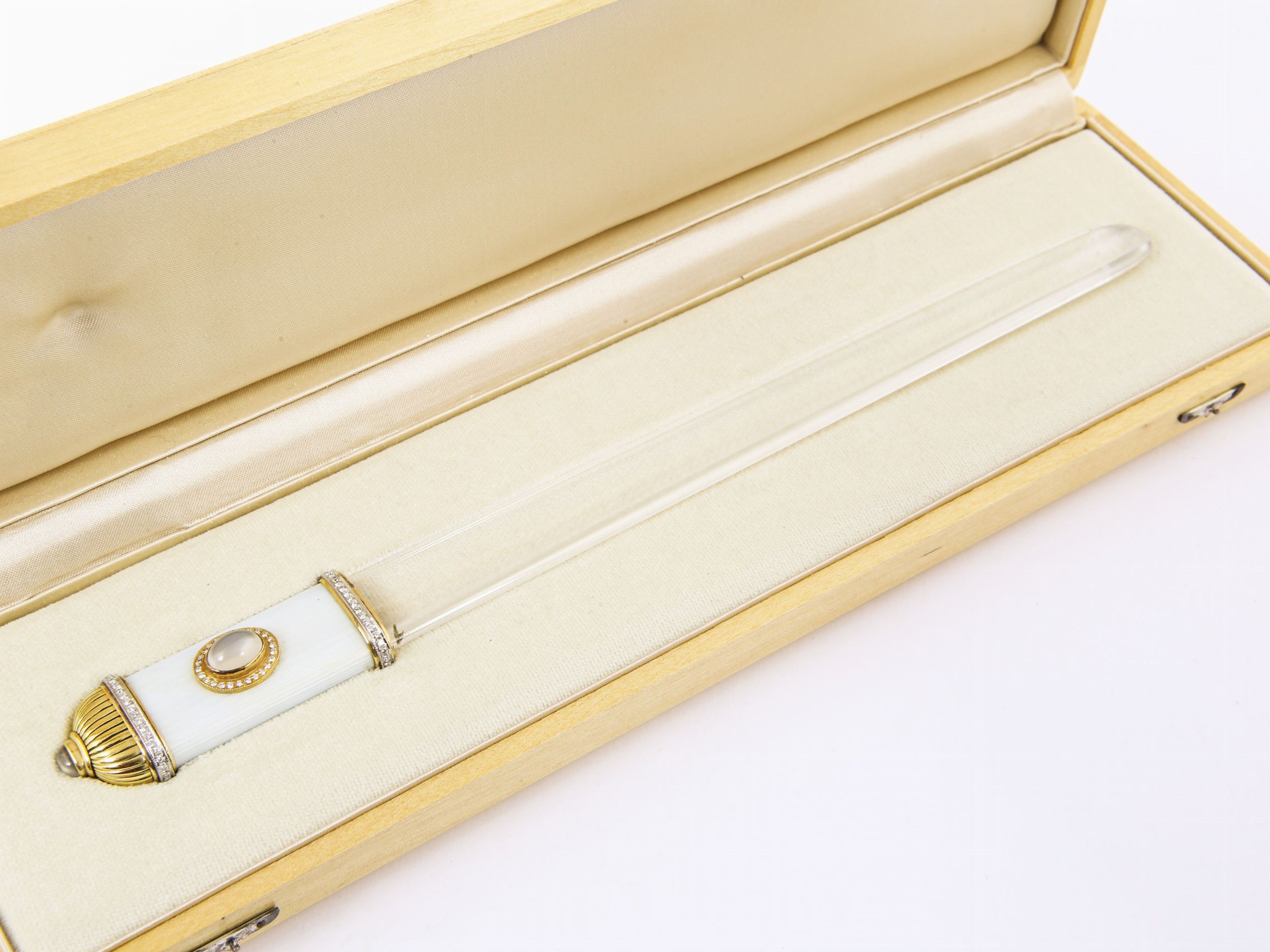 Tagliacarte in cristallo di rocca, oro giallo, argento, diamanti, pietra di luna [..]