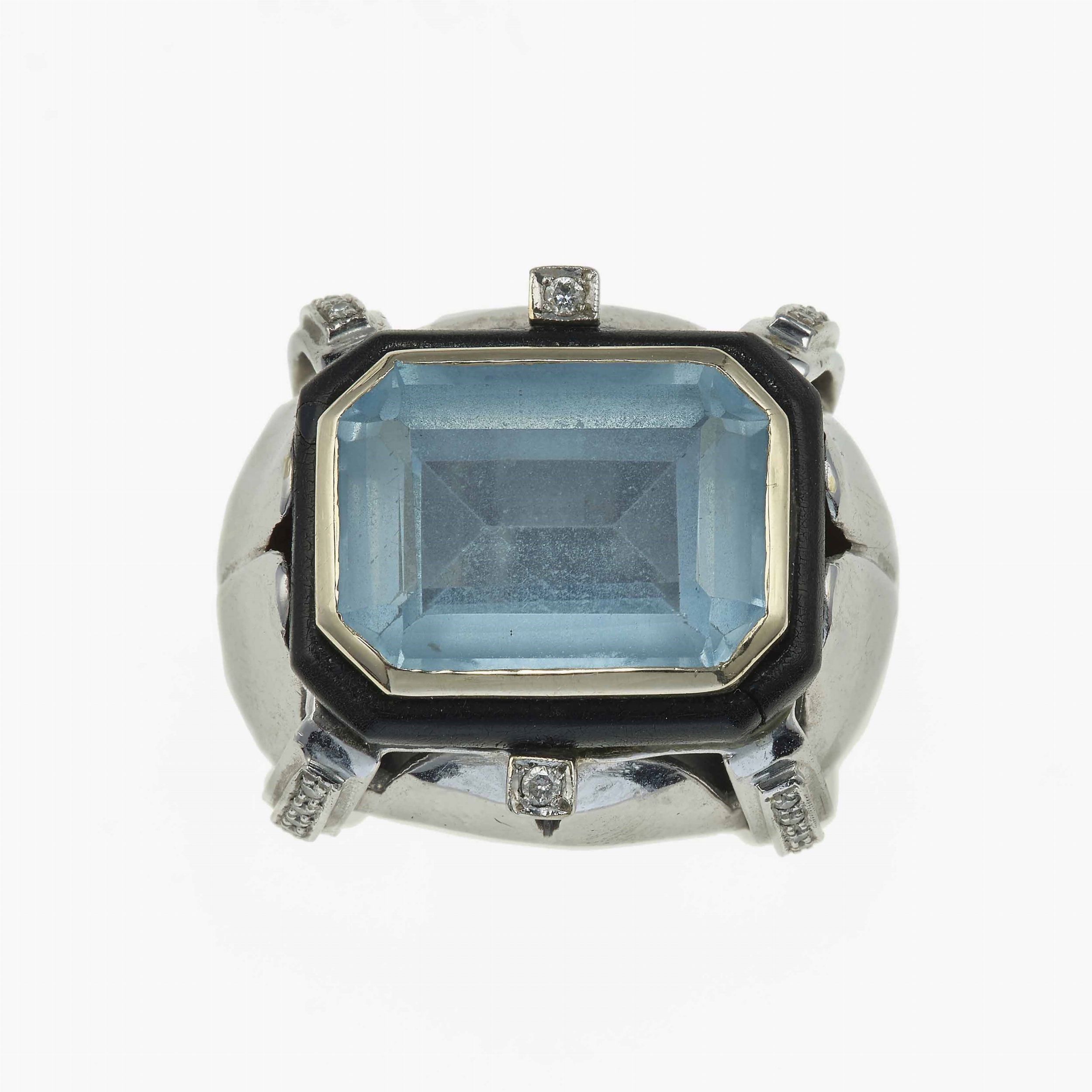 Anello con topazio azzurro, smalto e piccoli diamanti