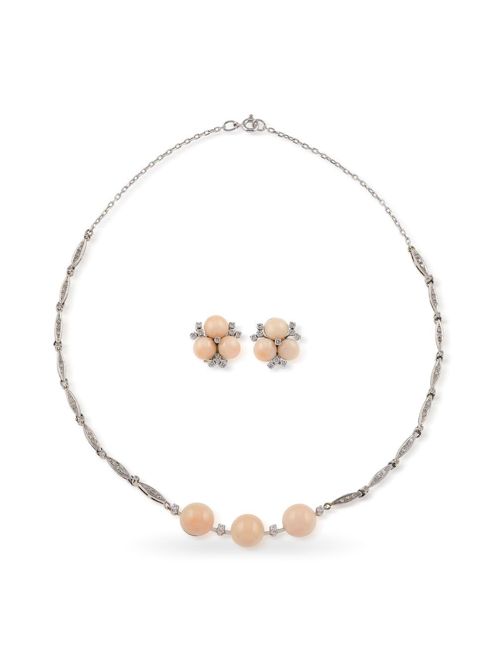 Demi parure costituita da orecchini e girocollo con coralli rosa