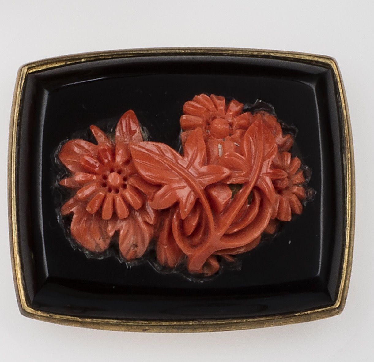 Fibbia in onice con decoro in corallo inciso