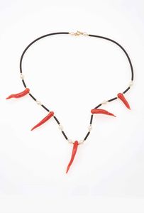 Collana in corallo con pendente inciso