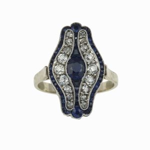 Anello con topazio azzurro, smalto e piccoli diamanti
