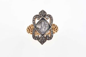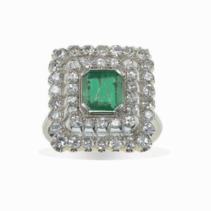 Anello con smeraldo di ct 1.10 circa e diamanti taglio huit-huit a contorno