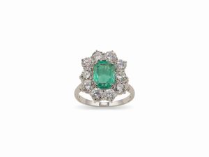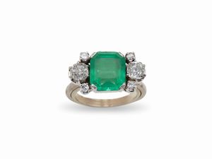 Anello con smeraldo Colombia di ct 1.40 circa e diamanti taglio a brillante per [..]