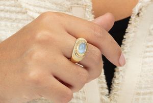 Fabergé. Anello con smalto bianco, diamanti e clair de lune