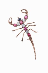 Spilla con fiori in diamanti, zaffiri, rubini e smeraldi