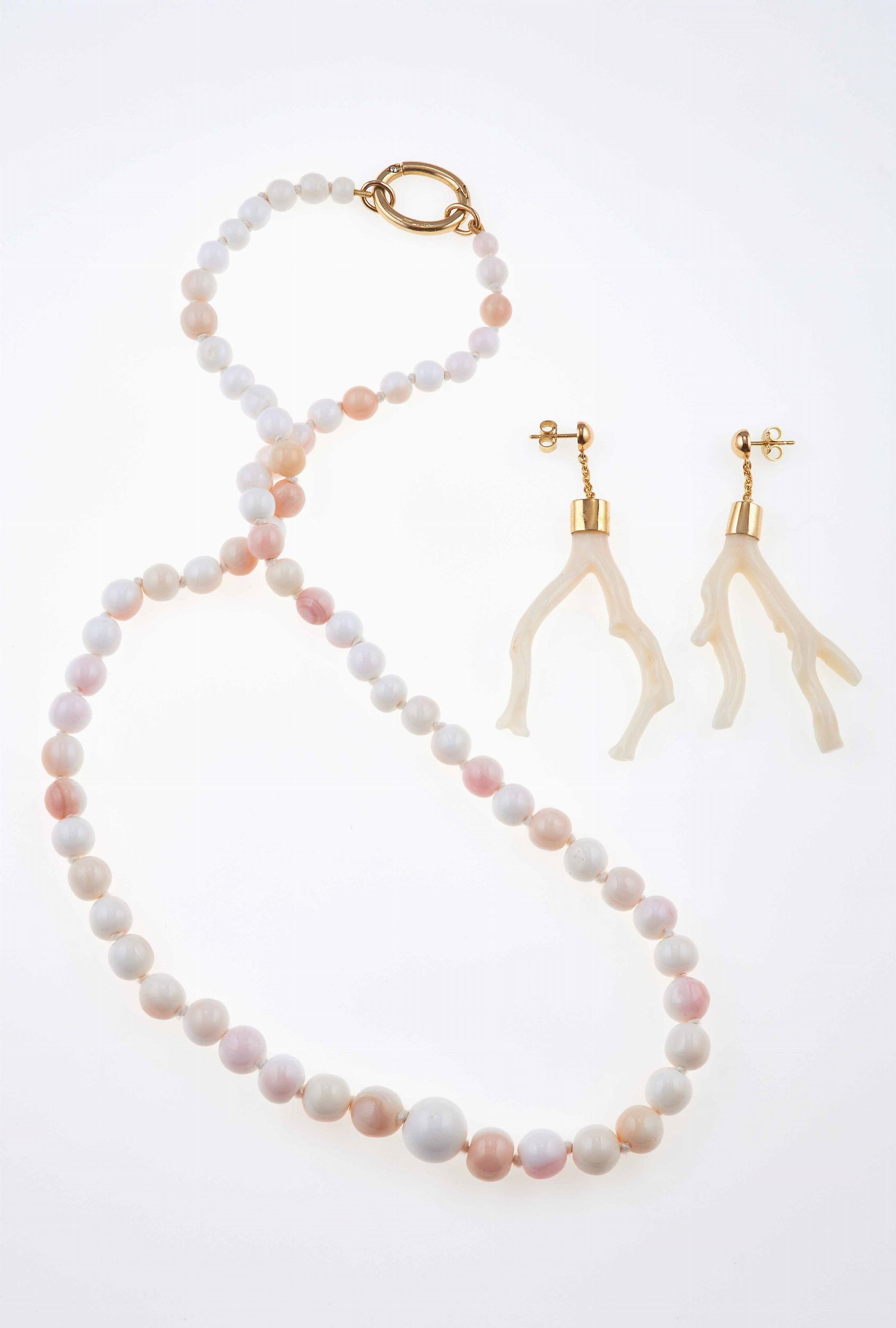 Lotto composto da girocollo ed orecchini in corallo rosa