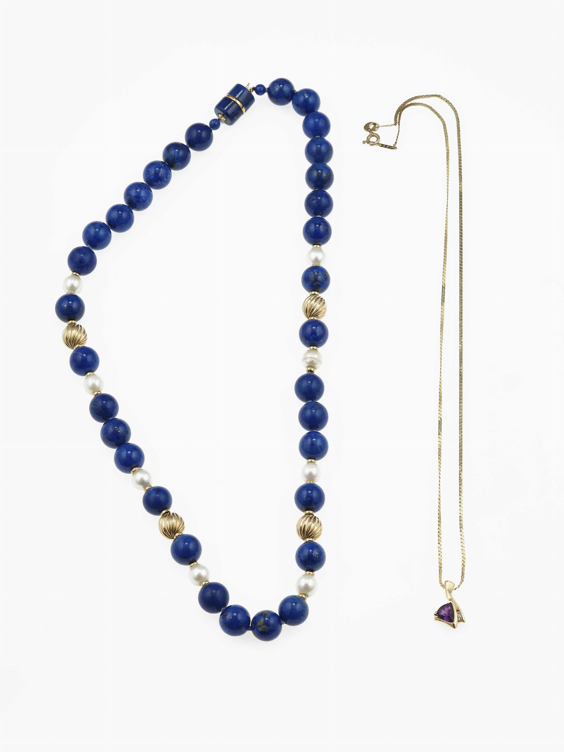 Lotto costituito da una collana in lapislazzuli e un pendente con ametista