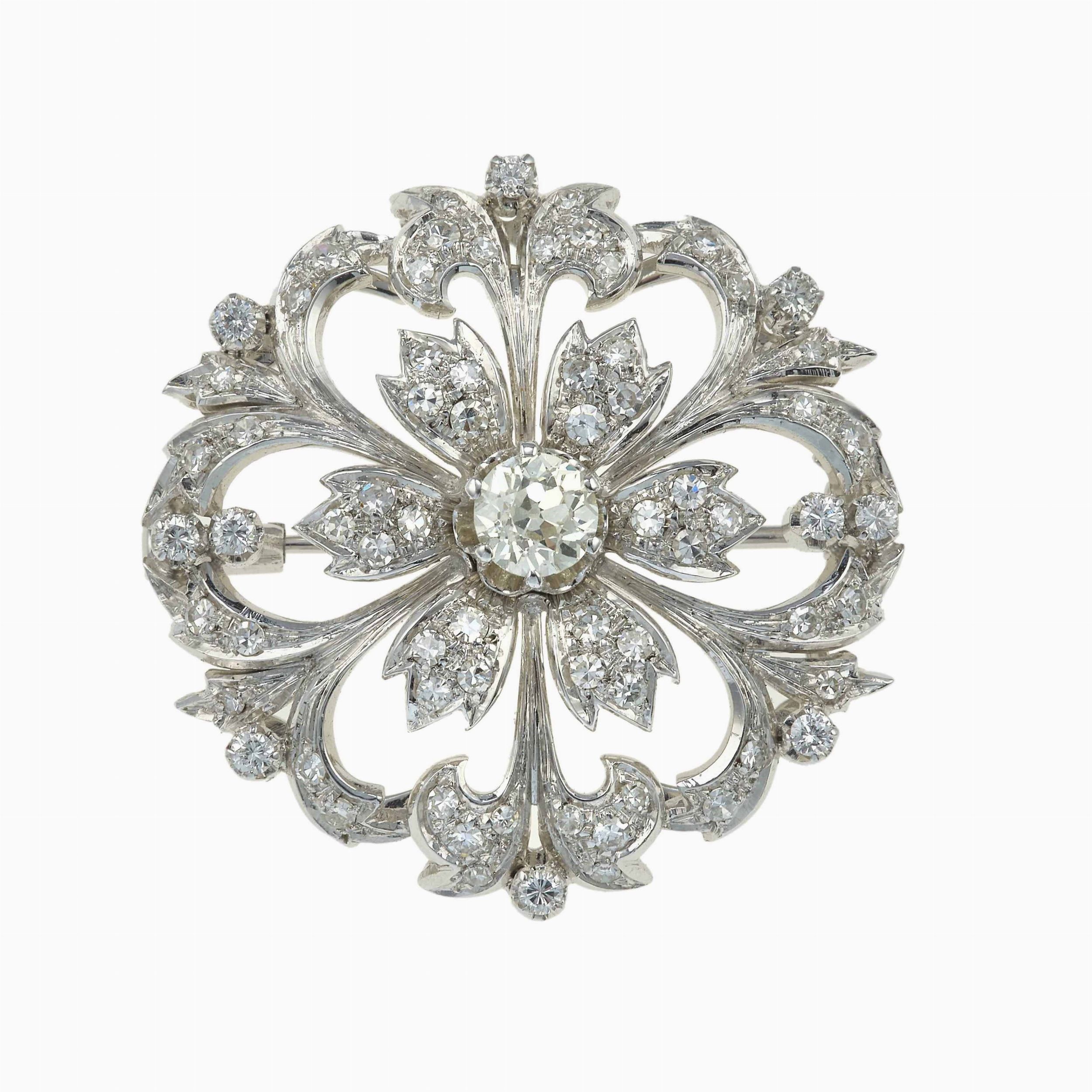 Spilla a soggetto floreale con diamanti