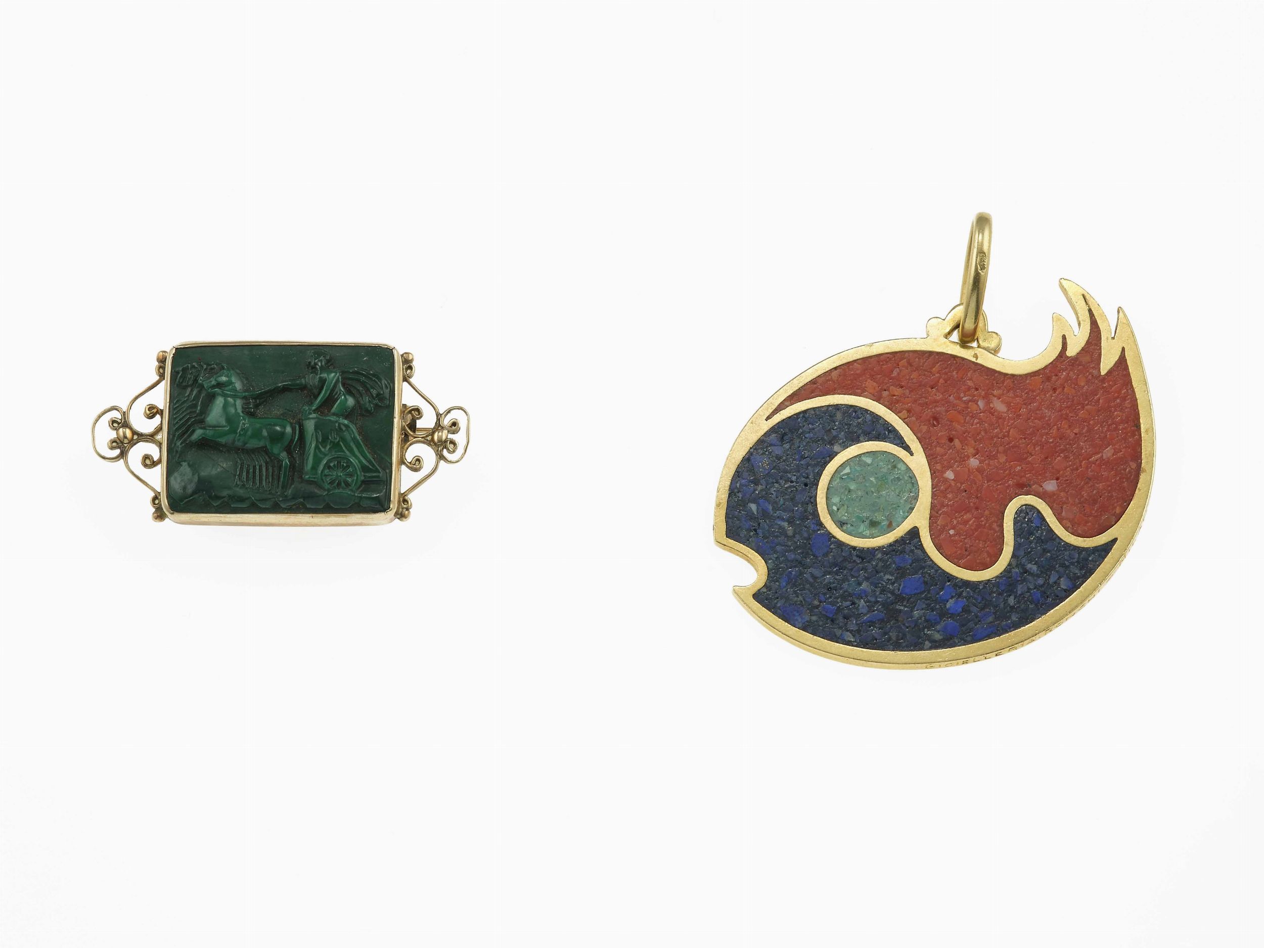 Spilla e pendente in pietre dure
