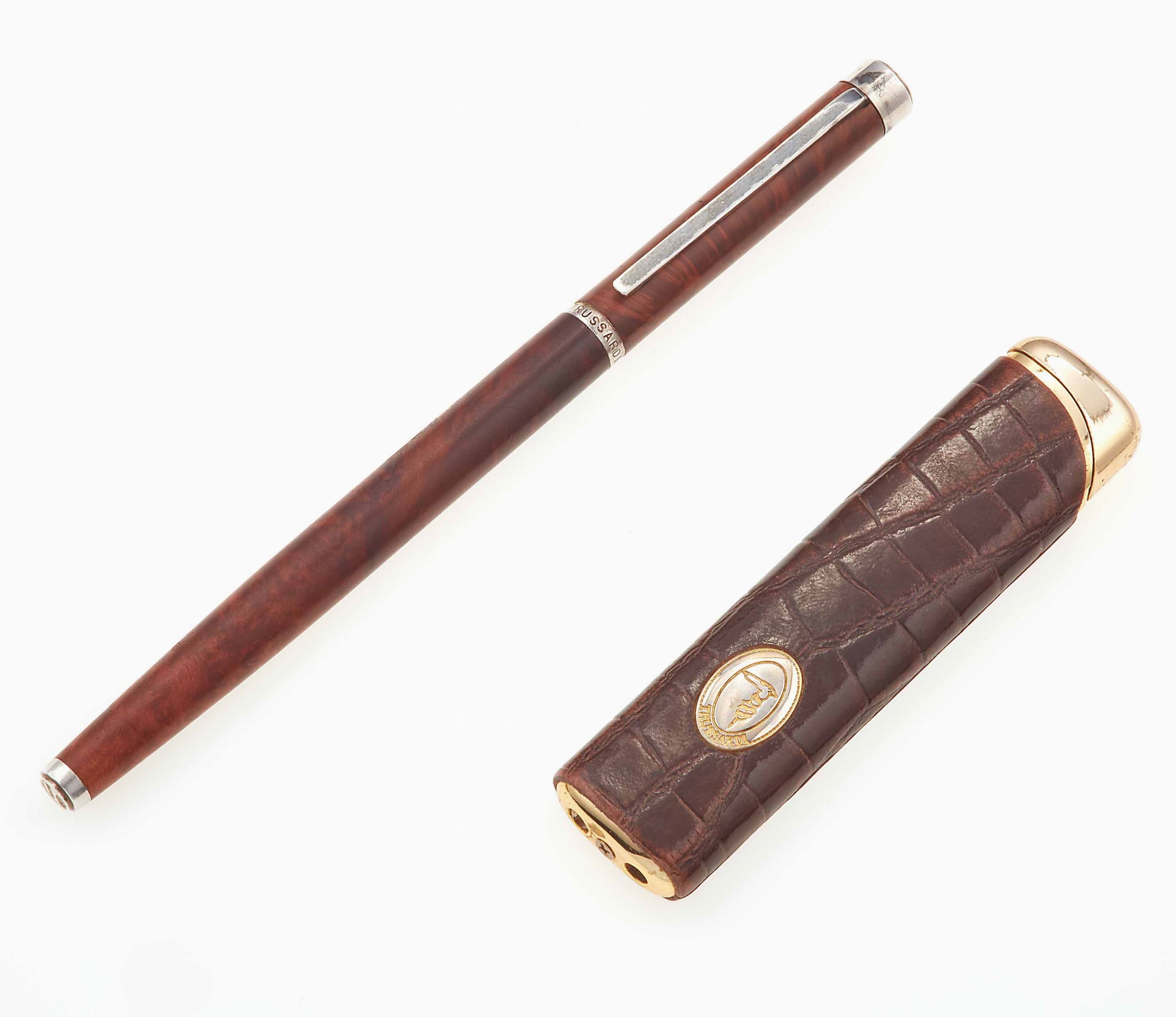 Lotto composto da Trussardi penna in radica e sterling silver ed accendino in pe [..]