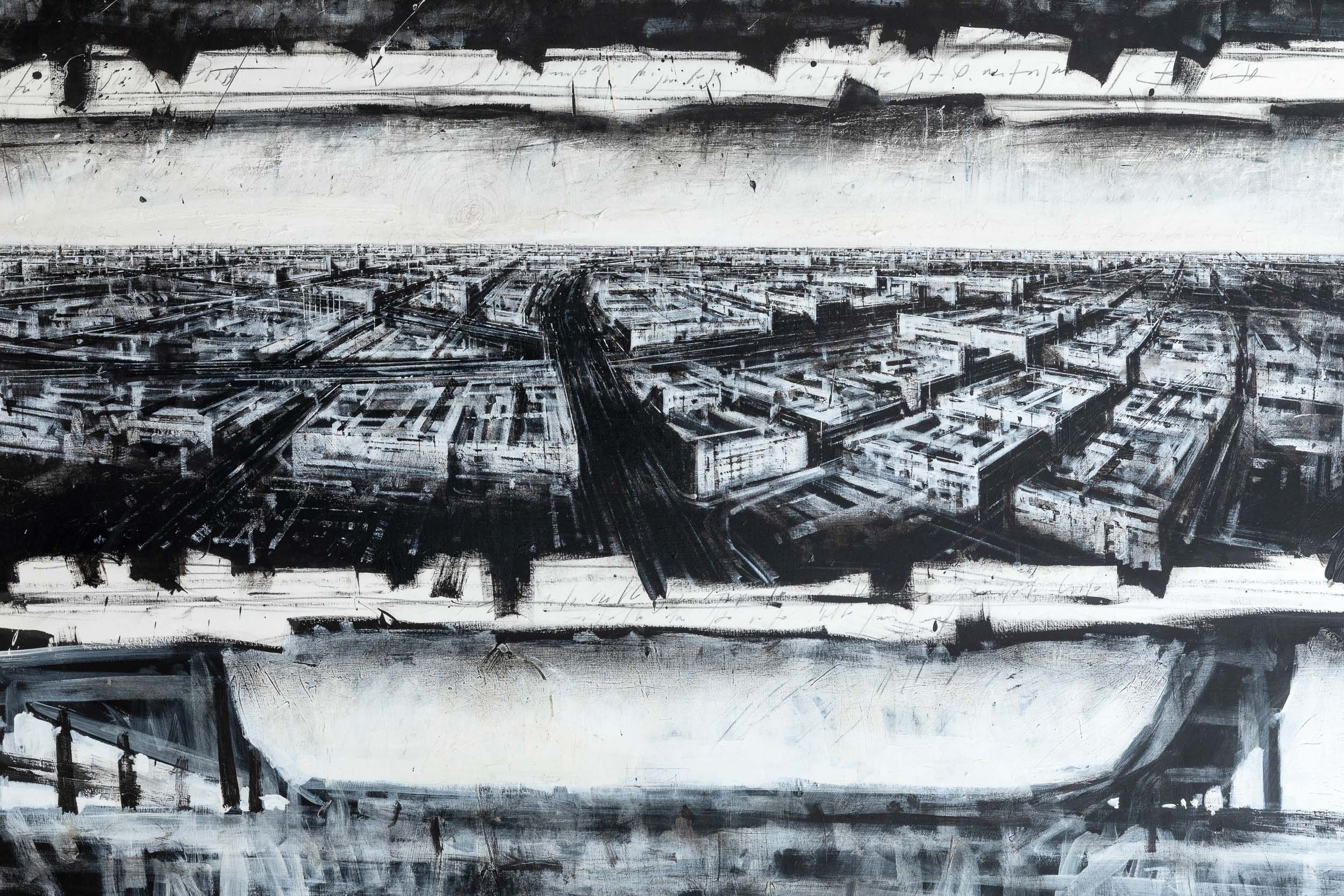 tecnica mista su carta intelata, Largh. 204 - Alt. 104 Cm