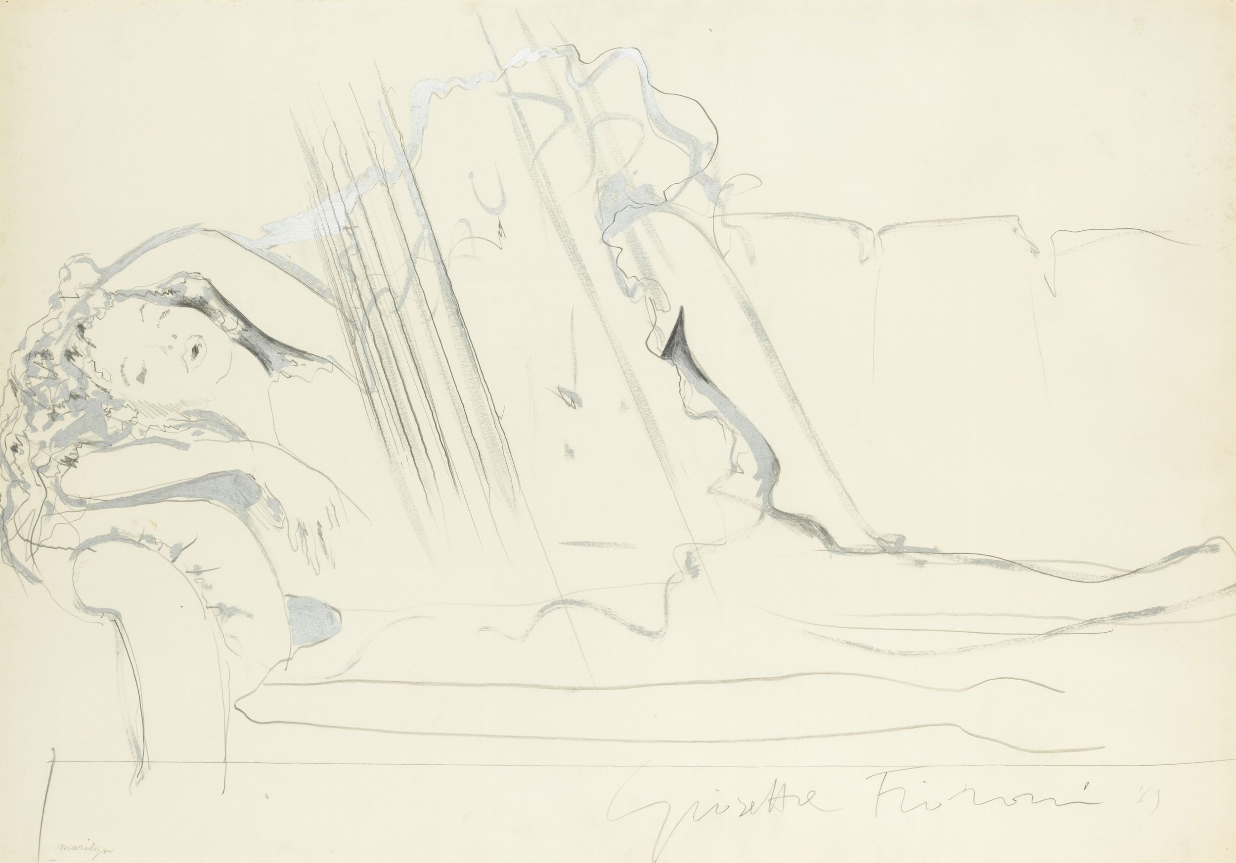 matita e smalto argento su carta, Largh. 100 - Alt. 70 Cm