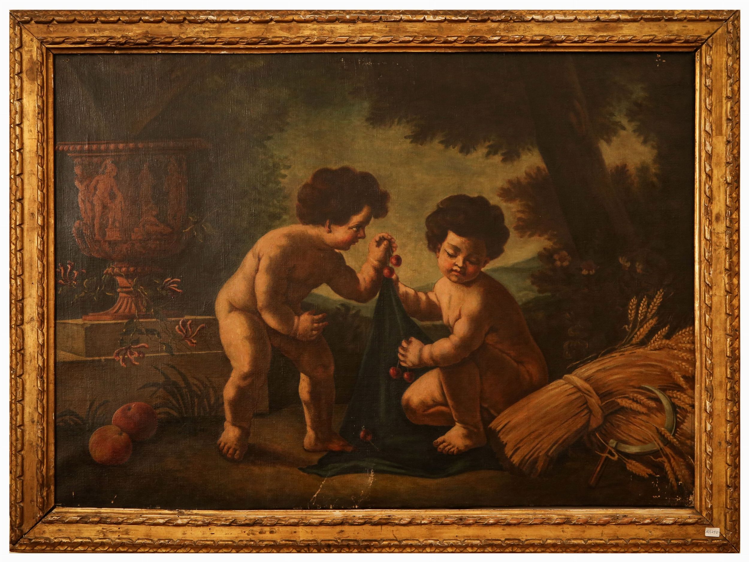 XIX/XX secolo olio su tela, in antica cornice in legno dorato ed intagliato con motivi a torchon, lievi difetti