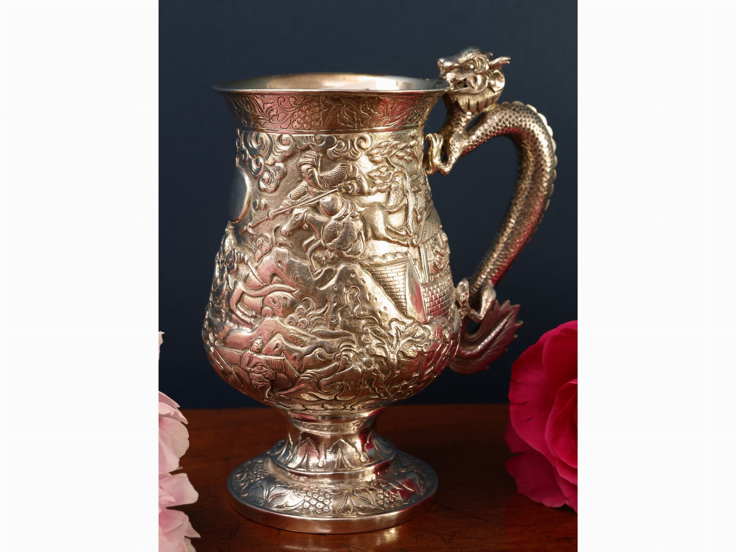 Cina, XX secolo completamente istoriato con scena di battaglia, presa modellata come un drago rampante