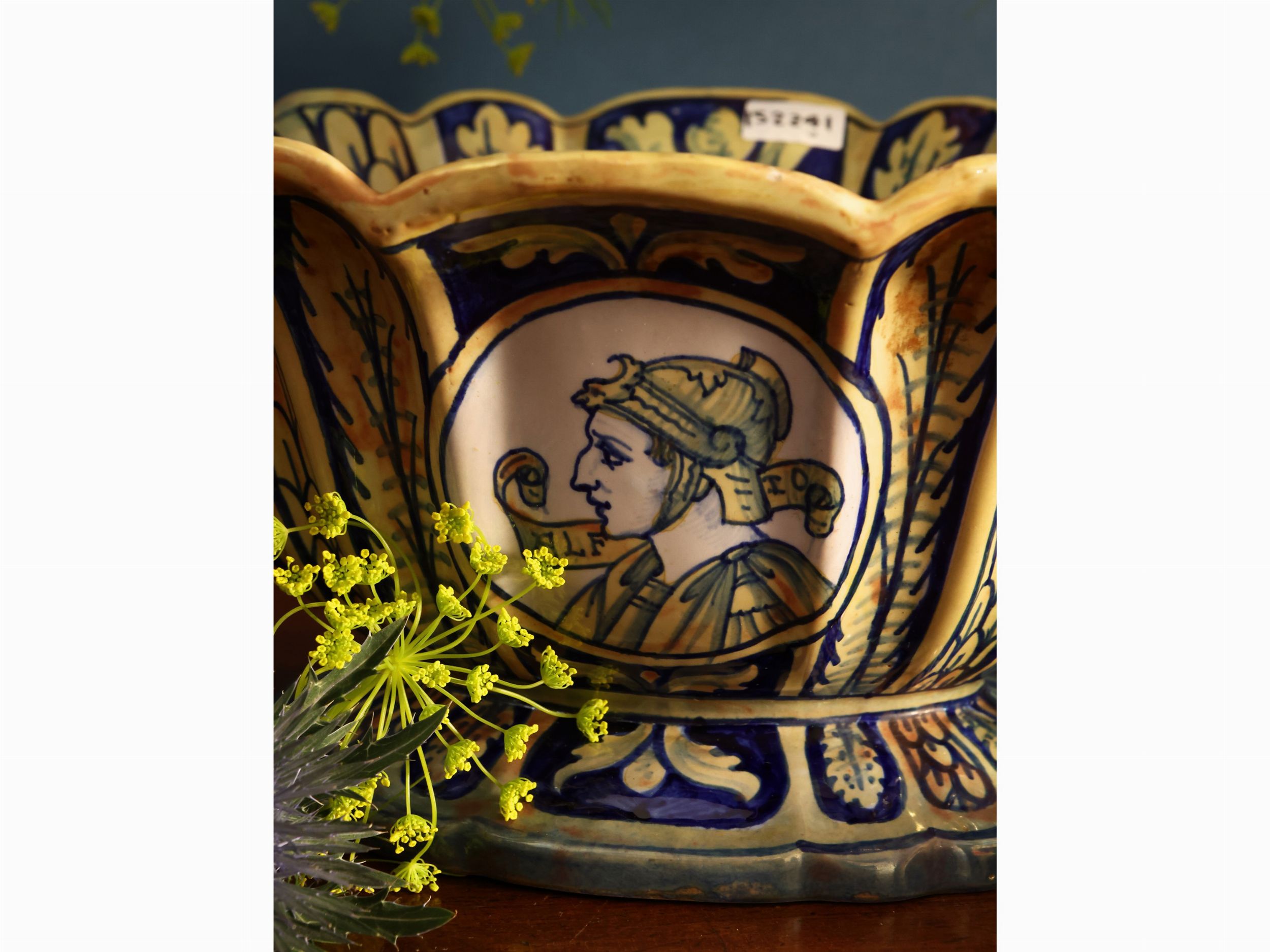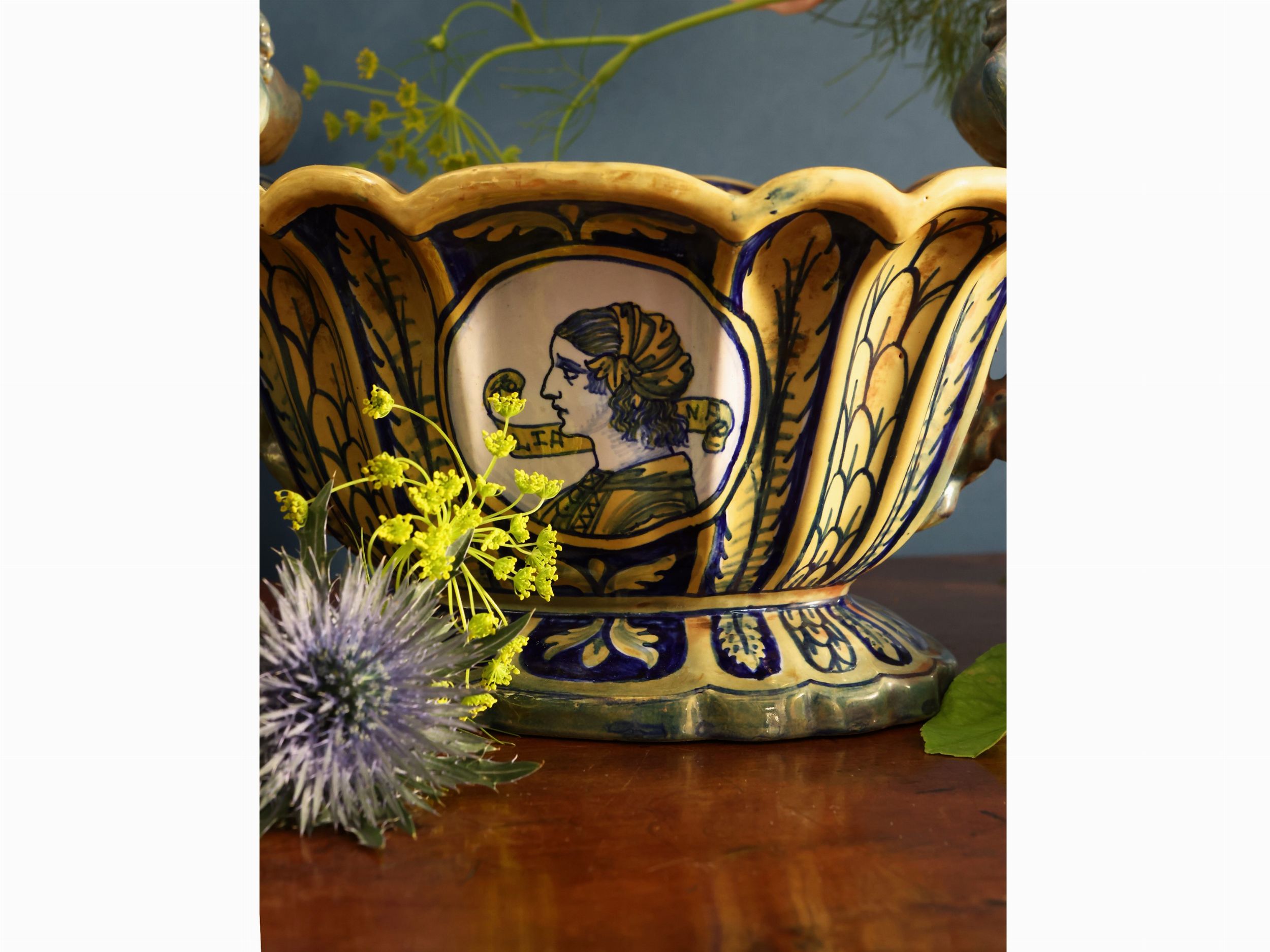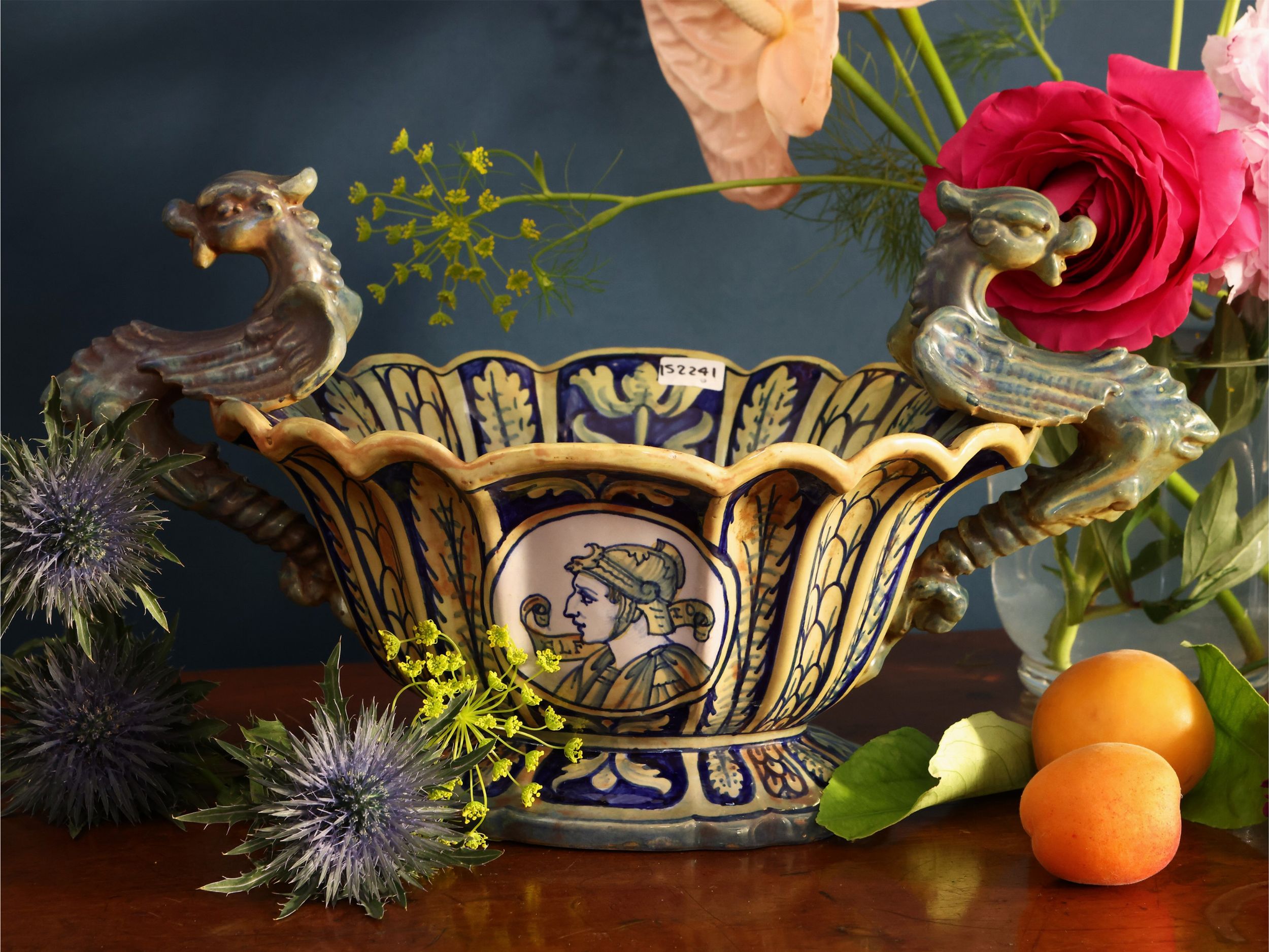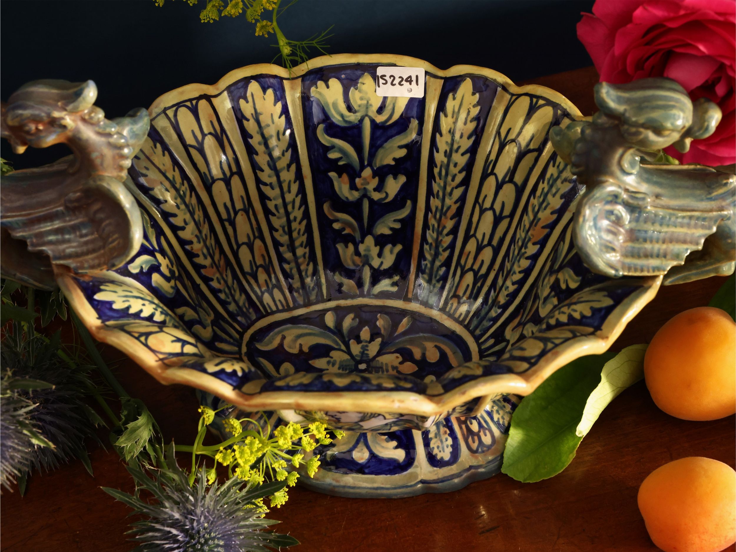 Centrotavola a navicella in terracotta smaltata a lustro, Gualdo Tadino