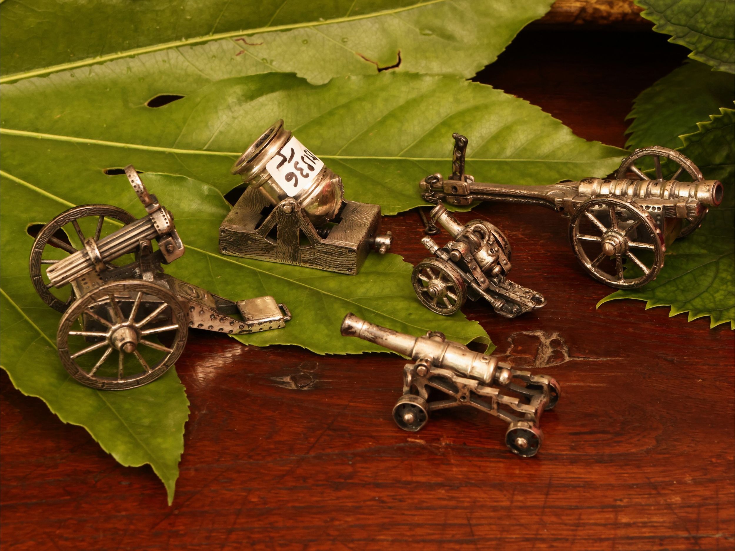 Cinque miniature di cannoni in argento