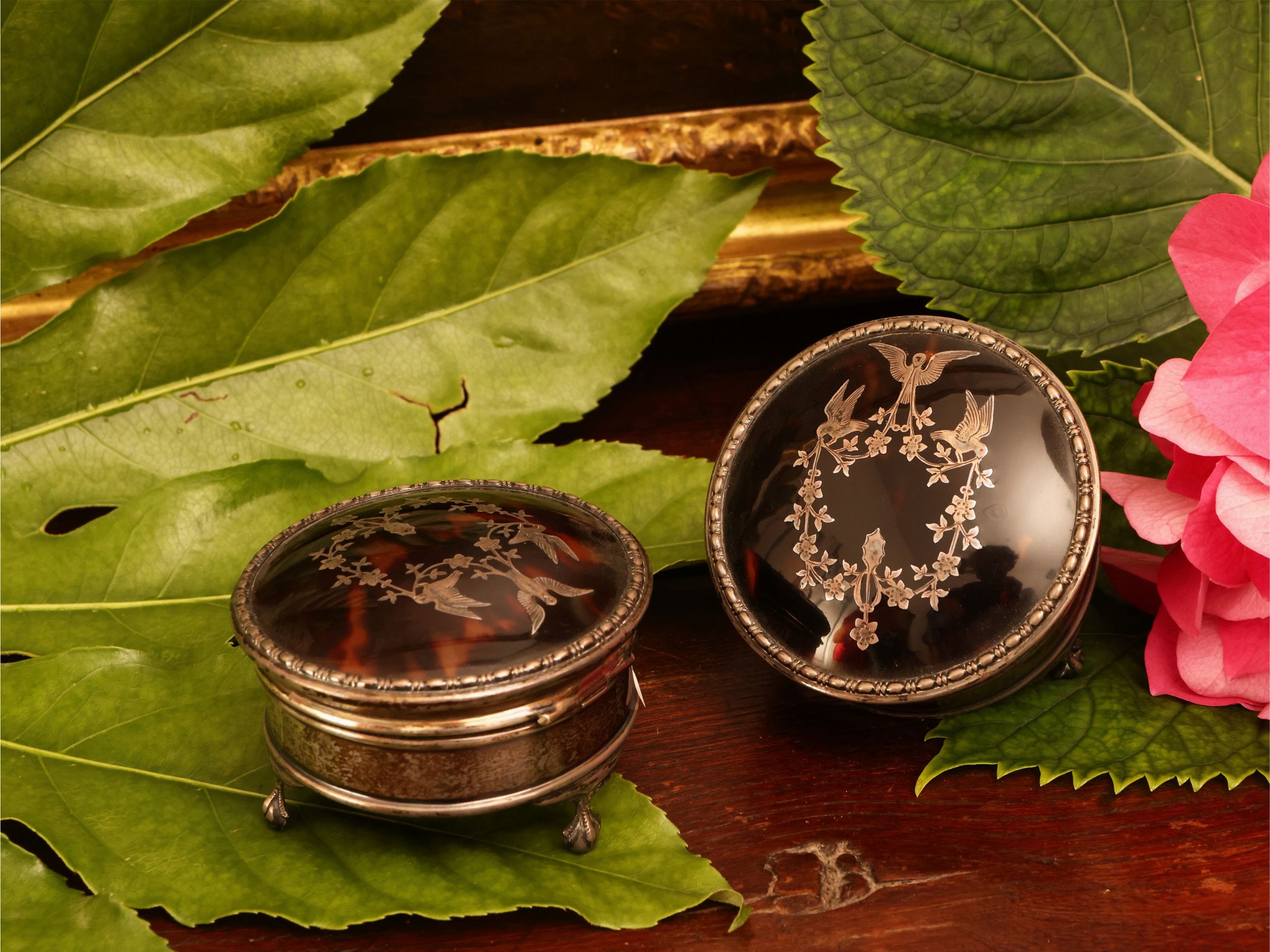 Birmingham, 1919 di forma circolare, coperchi piqué, su tre piedini zoomorfi, interni in velluto beige
