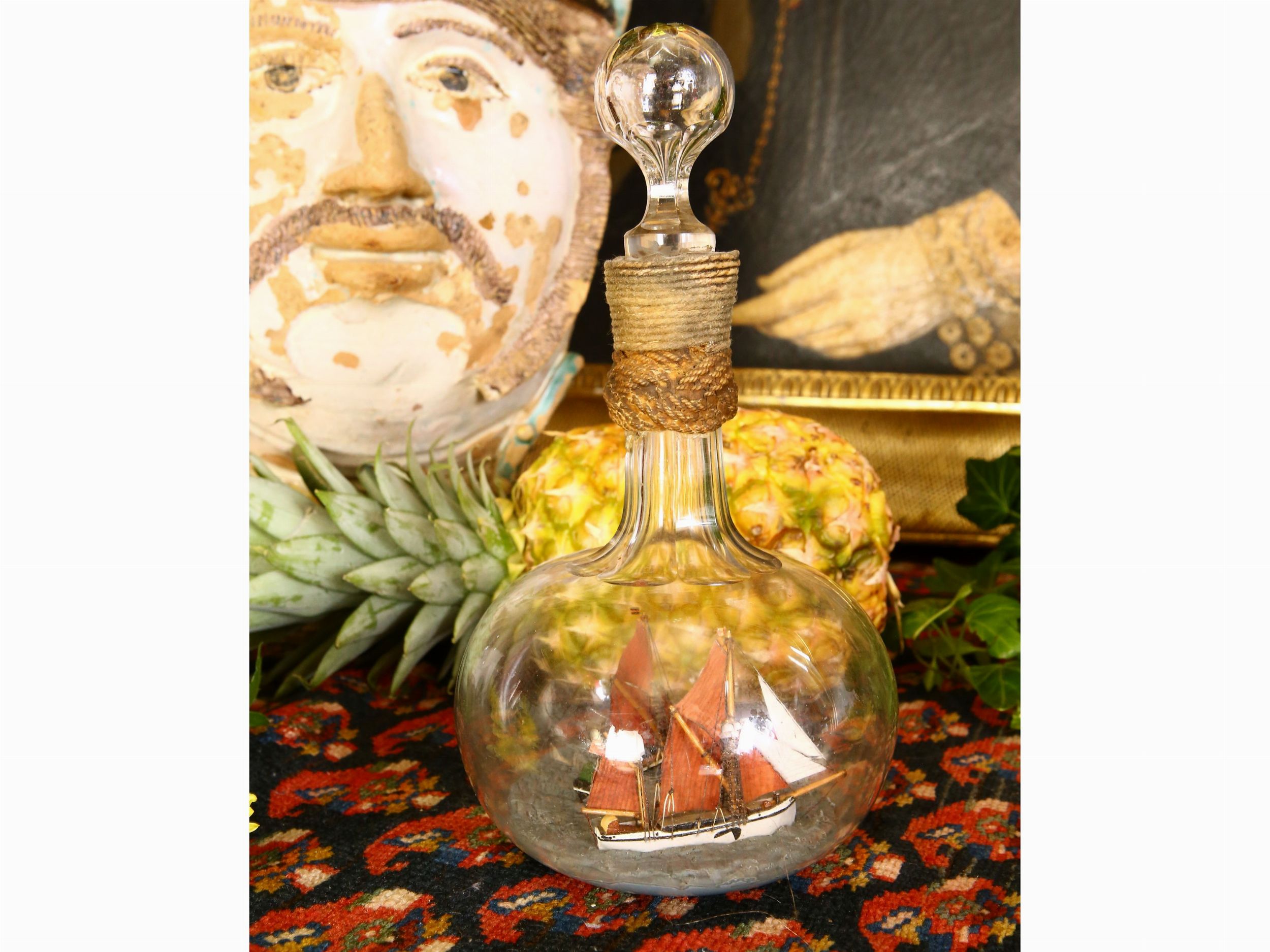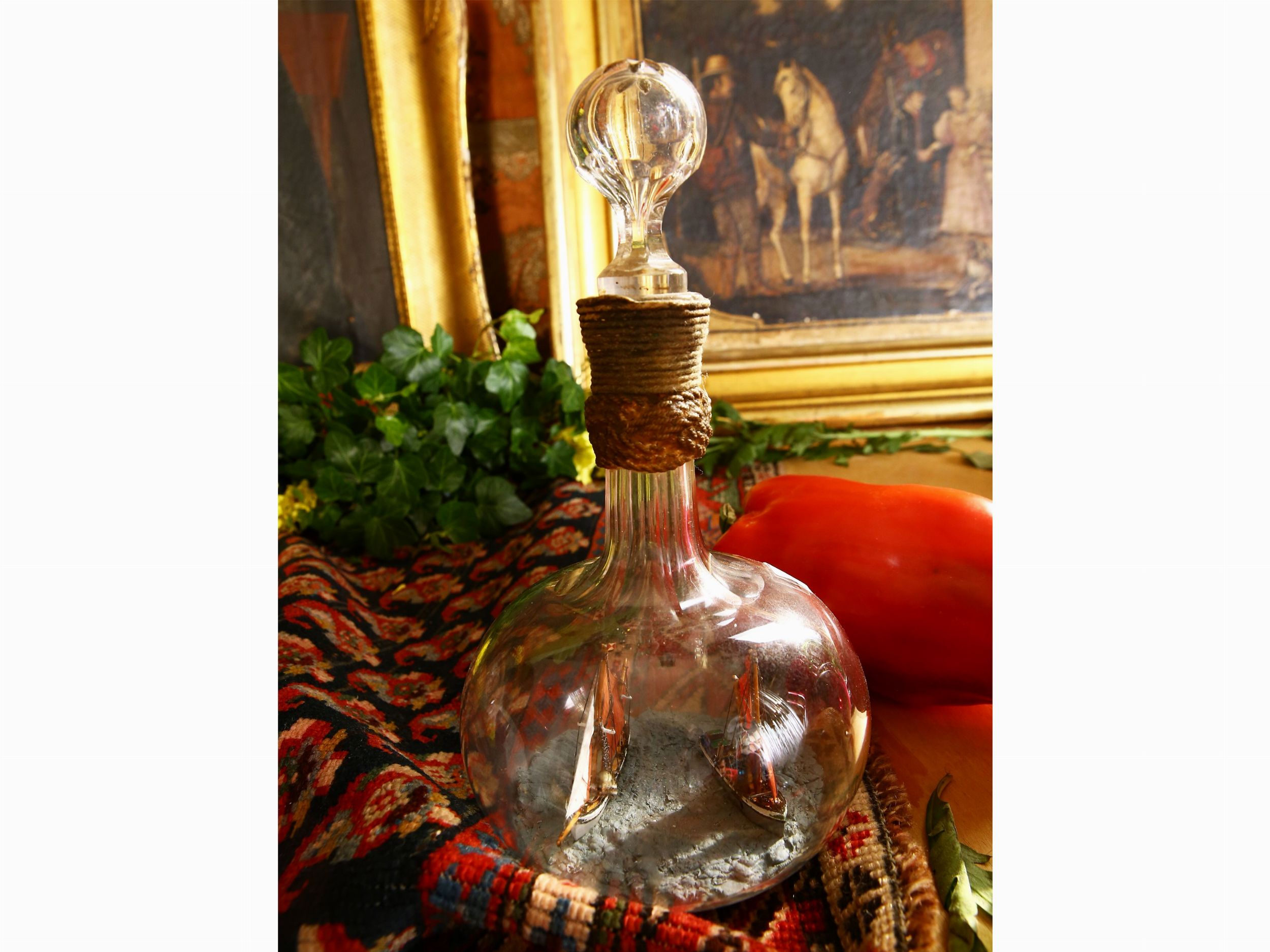 inizio del XX secolo entro bottiglia in cristallo, collo rilegato con cime intrecciate