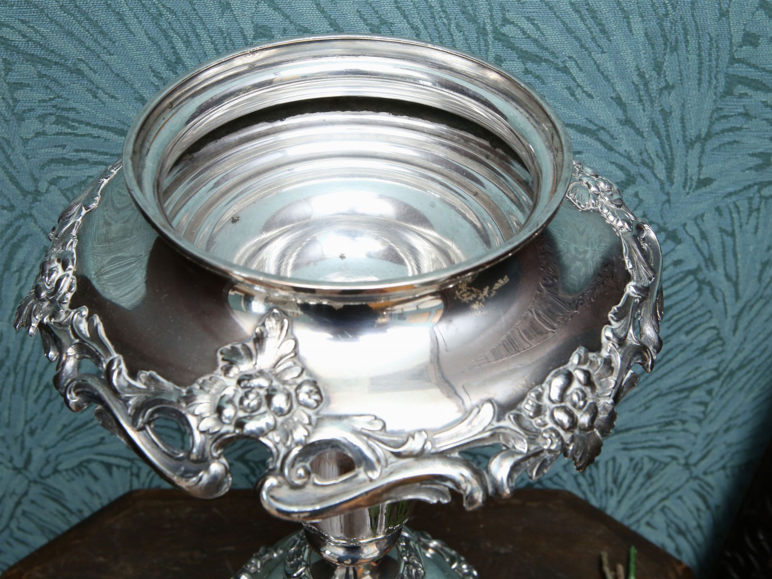 Grande fioriera centrotavola in metallo argentato e cristallo