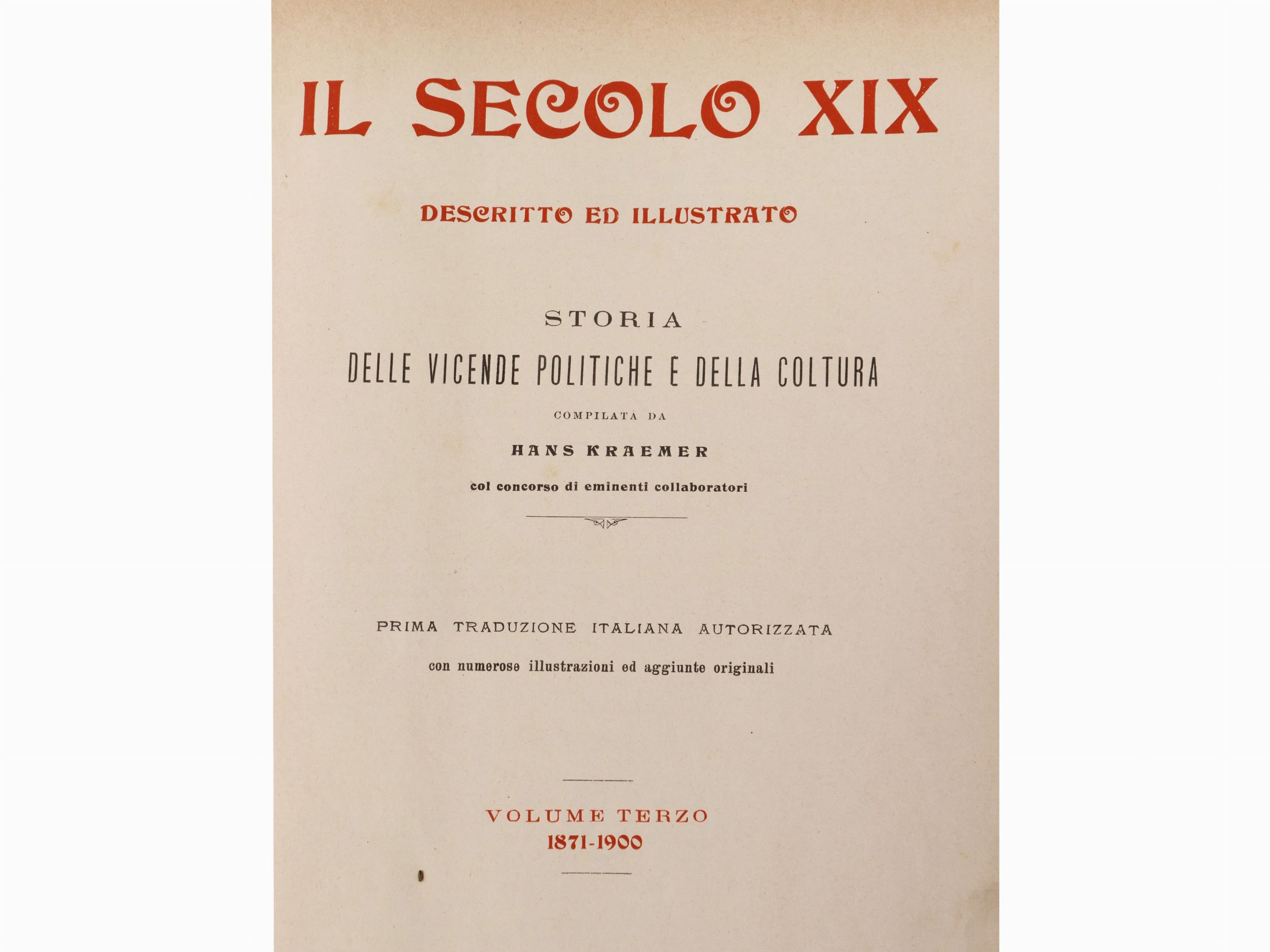 Il Secolo XIX descritto ed illustrato. Storia delle vicende politiche e coltura