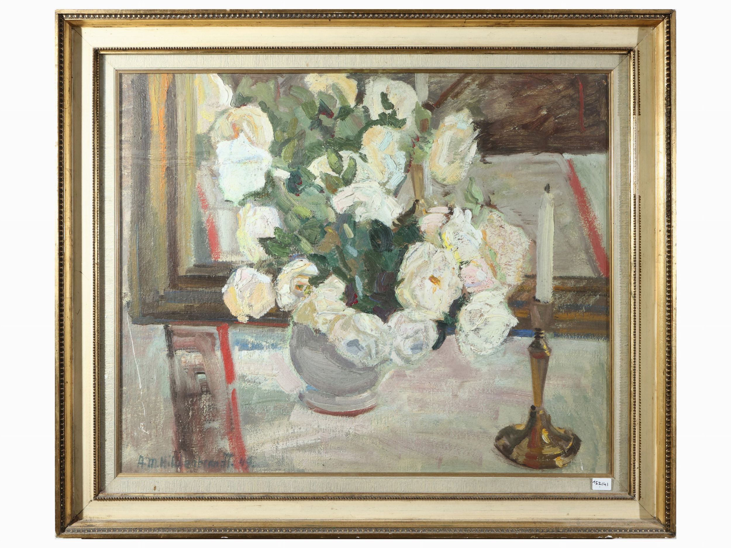 XX secolo olio su faesite, firmato A. M. Hildenbrandt, in cornice, alcuni difetti