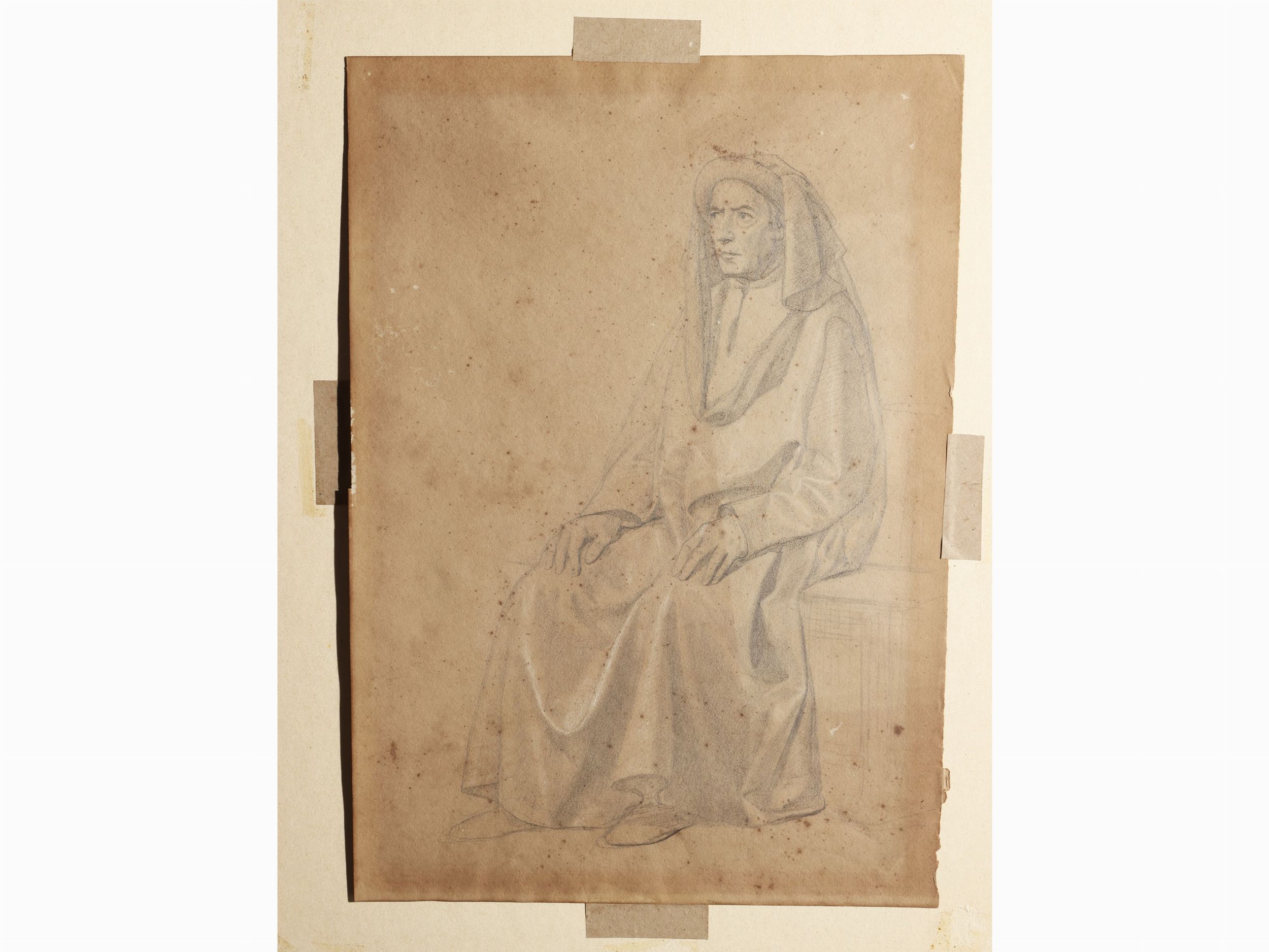 XIX secolo disegno a matita su carta, i margini sono applicati a cartone, reca ingiallimento del foglio e tracce di foxing