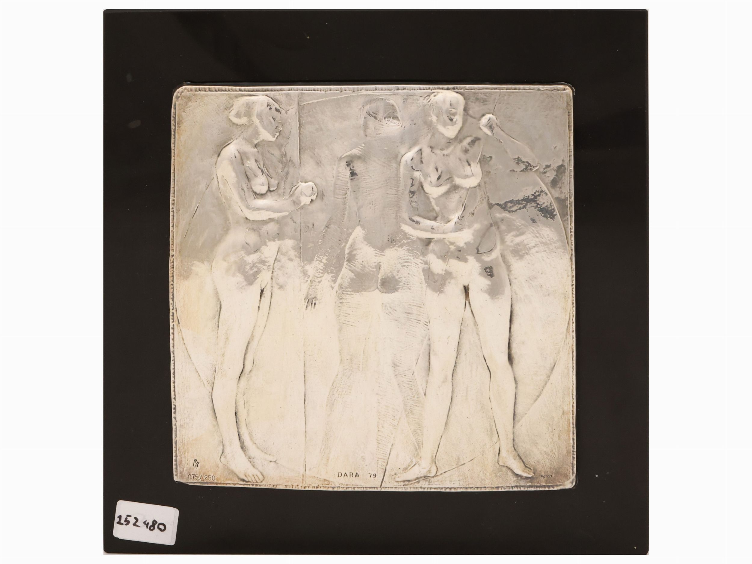 sbalzata con nudi femminili, su base in marmo nero del Belgio