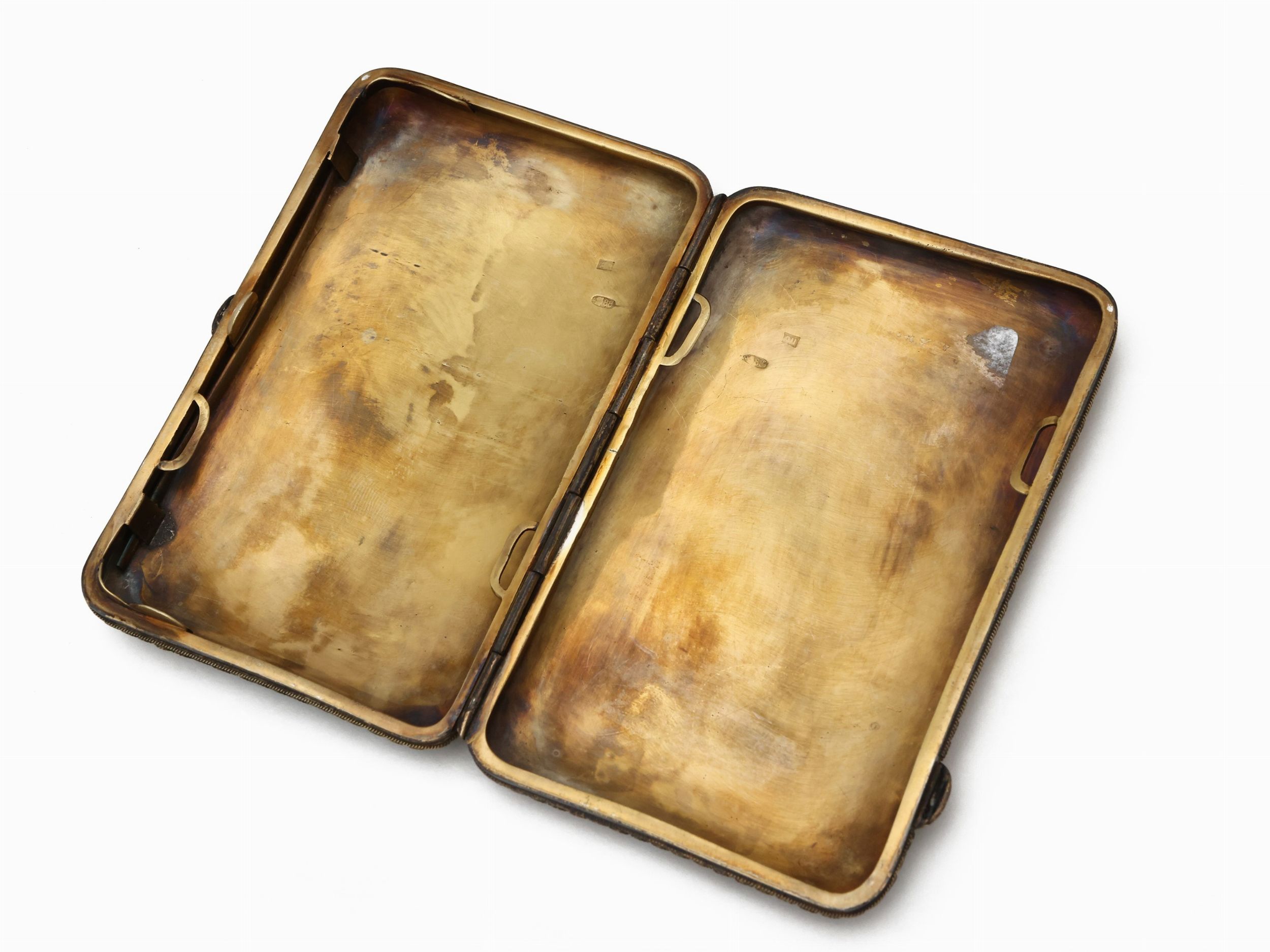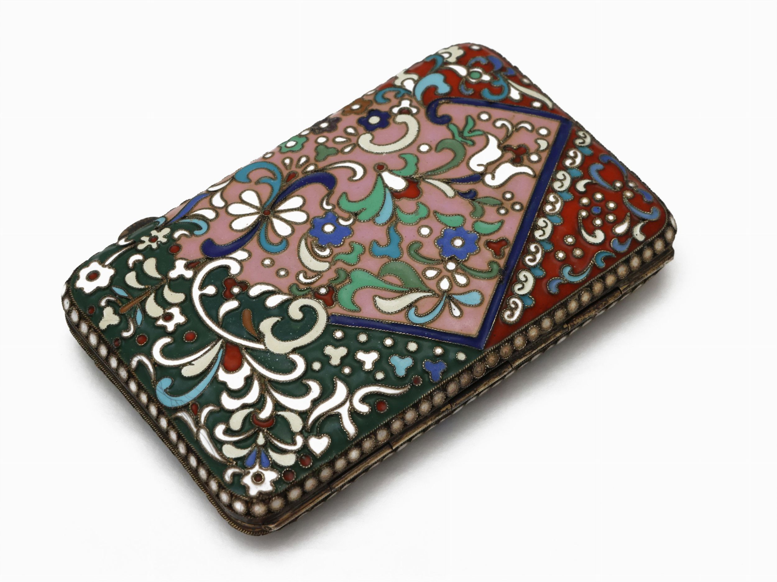 Scatola portasigarette in argento vermeil e smalti cloisonné