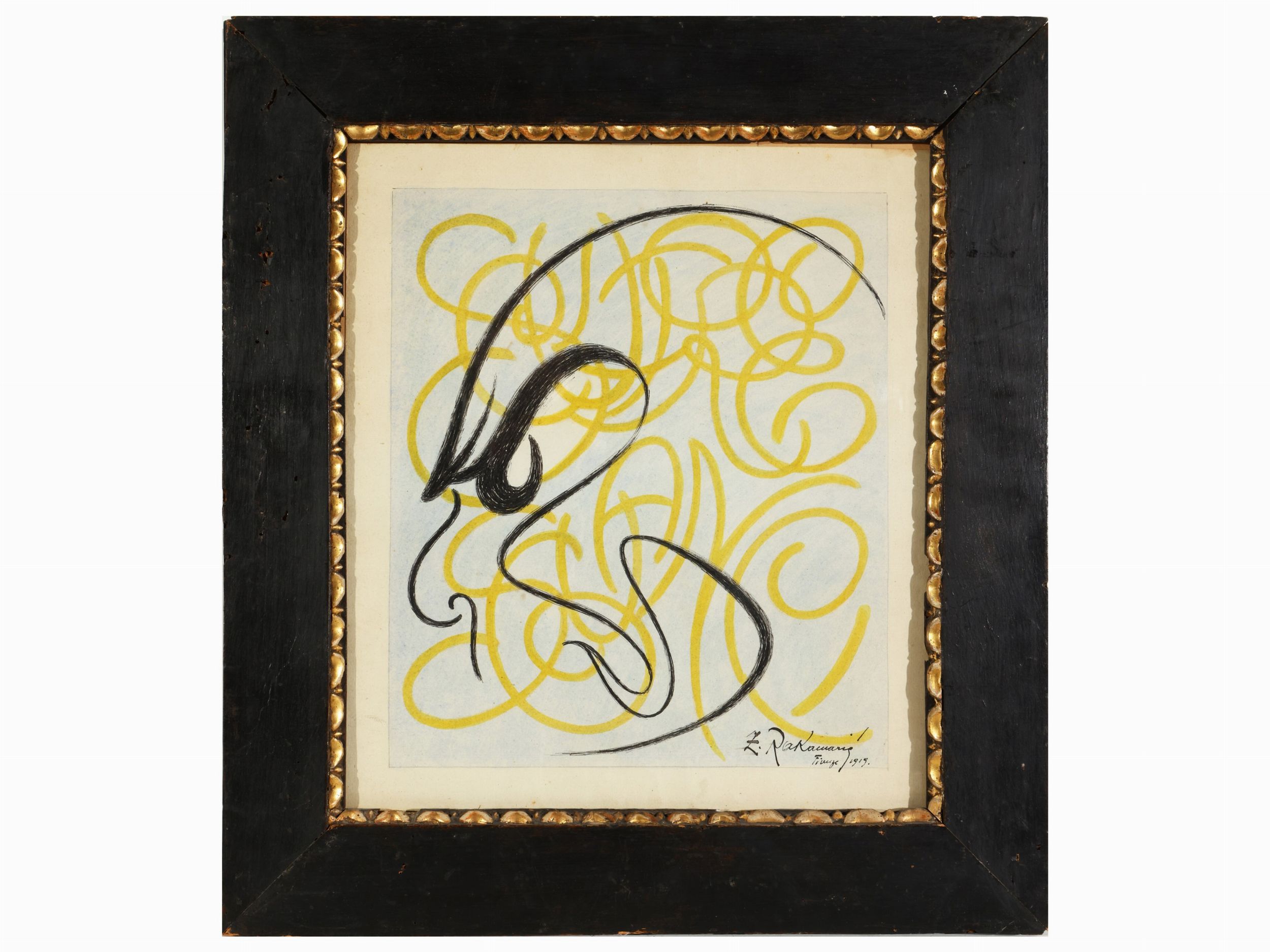 tecnica mista su carta, firmato e datato Z. Rakamaric 1919, in cornice
