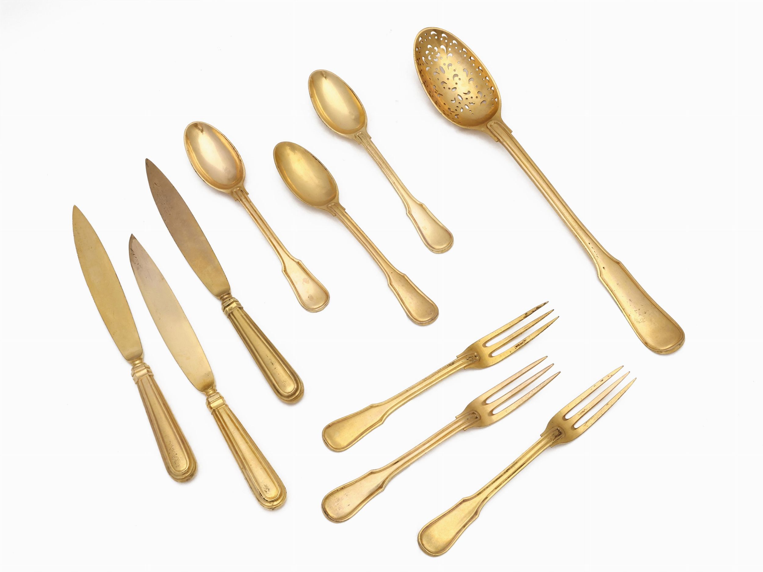 XIX/XX secolo composto da 18 cucchiai, 23 forchette, 26 coltelli e due grandi cucchiai da frutta e creme, alcuni difetti (69)