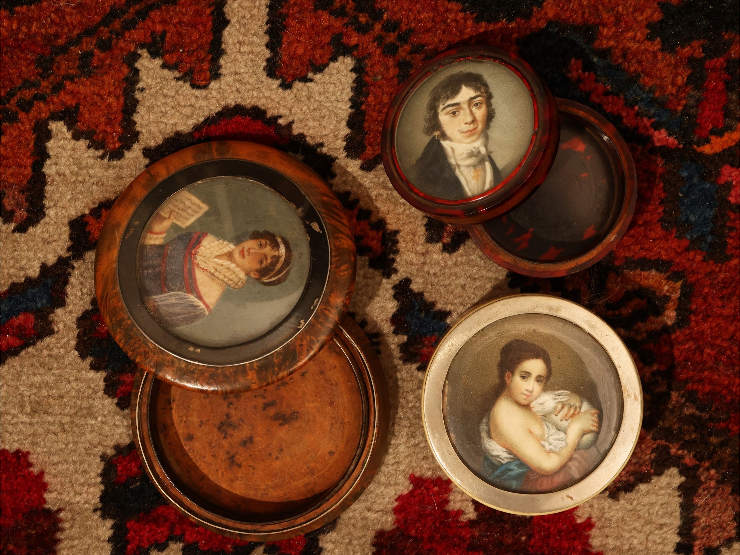 XIX secolo coperchi con incastonate miniature con ritratti, lievi difetti