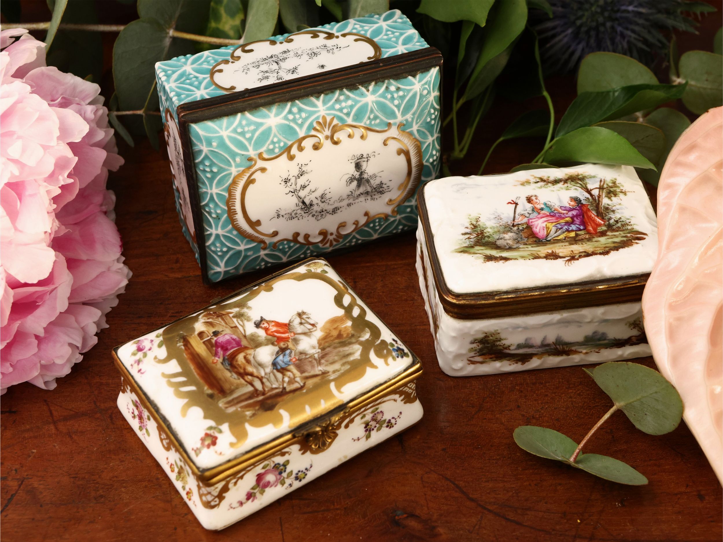 Tre tabacchiere in porcellana da collezione