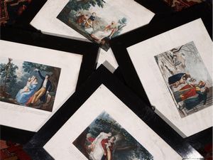 matrice cm 26x35 fine del XIX secolo serie di quattro incisioni francesi, in cornice, alcuni difetti