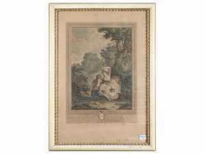 da cm 10,5x10,5 a cm 45x32 (5) XIX/XX secolo raccolta di incisioni e litografie, alcune raffiguranti scene galanti, [..]