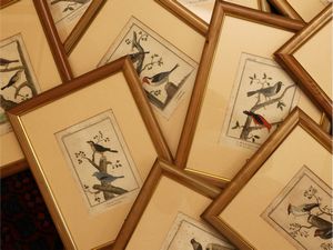 cm 12x20,5 fine del XIX secolo tre litografie con acquerellatura, in cornice, alcuni difetti