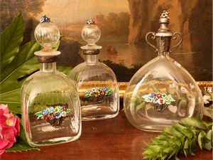 h cm 25 impreziosite da dettagli e fregi in argento e smalti, una coppia con baccellature ed una a fiasca