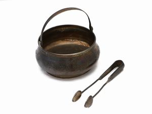 gr 470, h cm 27 Genova, XVIII/XIX secolo interamente sbalzati con motivi vegetali e baccellature, alcuni dife [..]