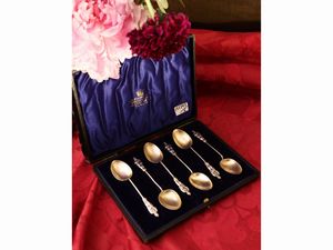 gr 30 (6) Birmingham, 1897 (6) manico realizzato a torchon con presa modellata come figura cinese, contenuto [..]