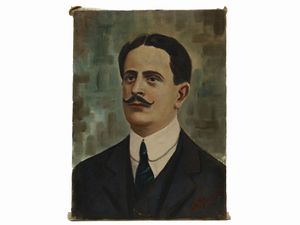 cm 40x30 inizio del XX secolo due dipinti ad olio su tela raffiguranti un gentiluomo ed una gentildonna, firmati, [..]