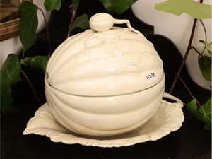 h cm 20x30x24 Veneto, fine del XVIII secolo realizzata come un melone adagiato sulla sua foglia, lievi difett [..]