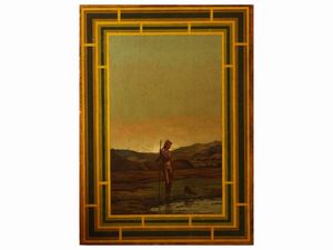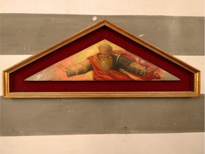 cm 48x30, cm 22x83 XX secolo due dipinti ad olio su tavoletta, nello stile della pittura antica, in cornice, [..]