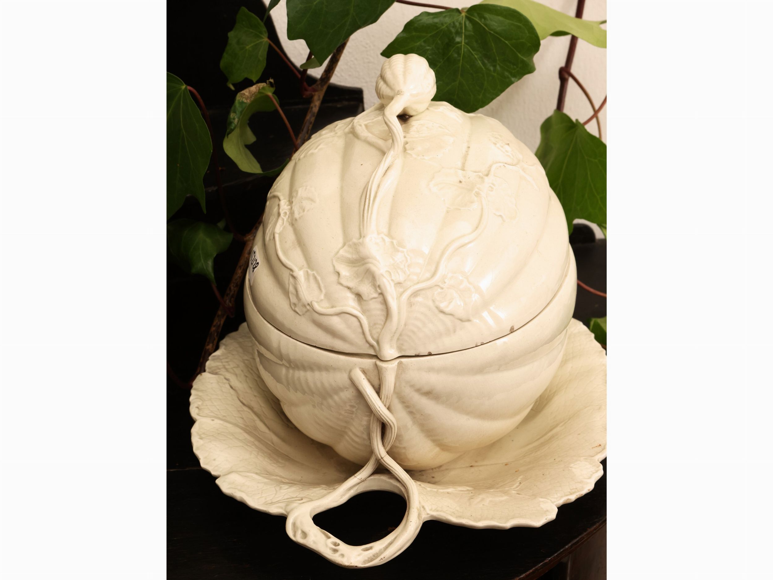 Veneto, fine del XVIII secolo realizzata come un melone adagiato sulla sua foglia, lievi difetti