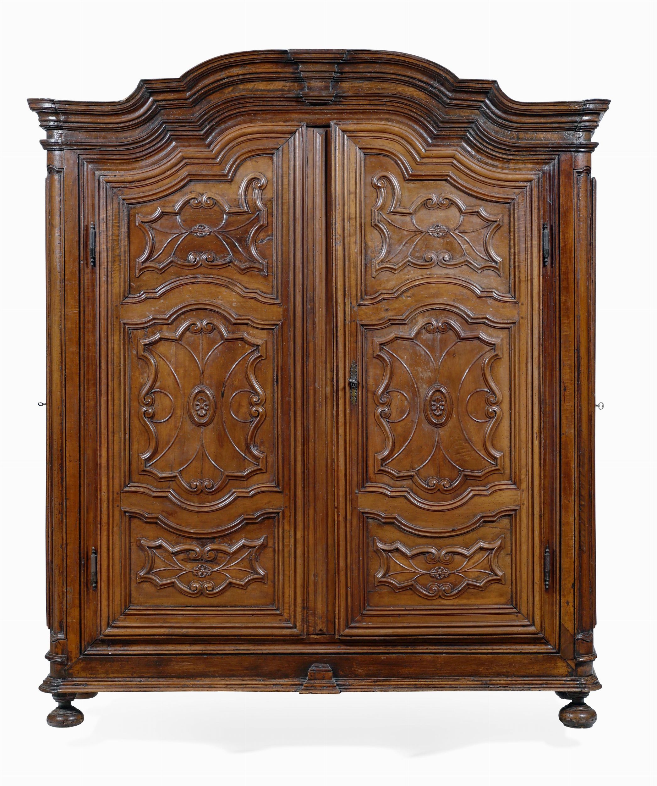 Armadio a due ante in noce intagliato. Piemonte XVIII secolo